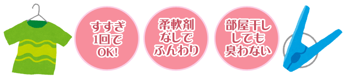 せっかく天然素材で洗っても柔軟剤の化学物質をお肌に残すことになるからです。
