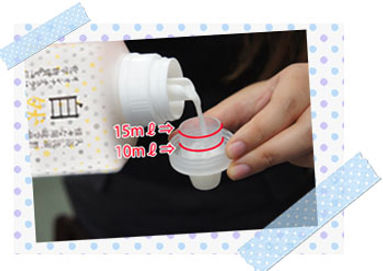 普通の洗剤と同じように計量して洗濯機に入れるだけです。せっけん洗剤のように撹拌してから洗濯物を入れるという手間はありません。